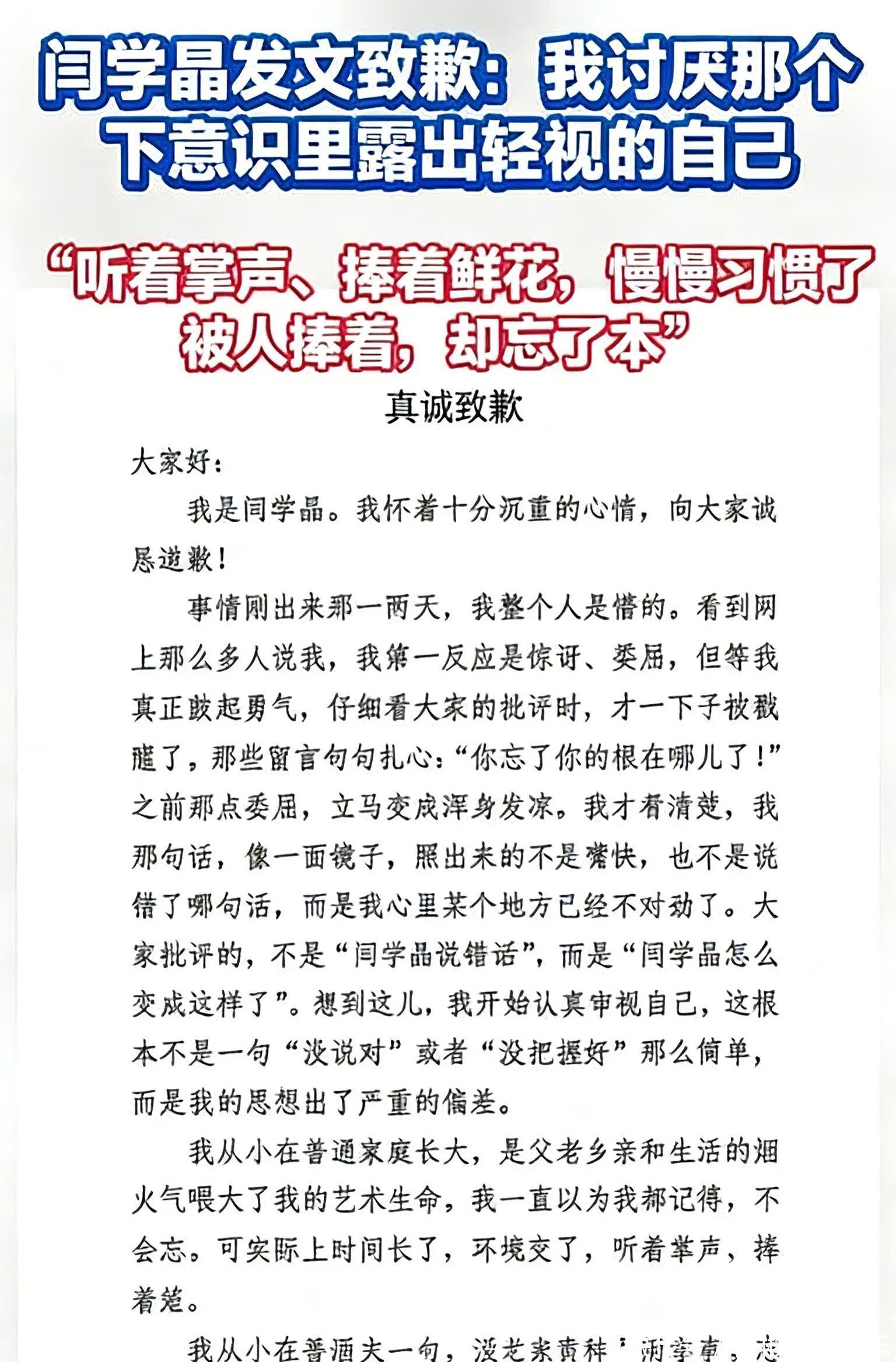 不管是公众人物还是普通人,谁不是从平凡日子里一步步打拼过来的?日子过好了是福气,但不能把福气当成脱离大众的资本,更不能忘了当初自己也为柴米油盐奔波过。网友在意的从来不是明星过得好,而是过得好之后能不能保留一份同理心和谦逊。闫学晶的道歉虽迟但到,至少让大家看到了“知错就改”的态度,这比硬扛到底更显担当。
