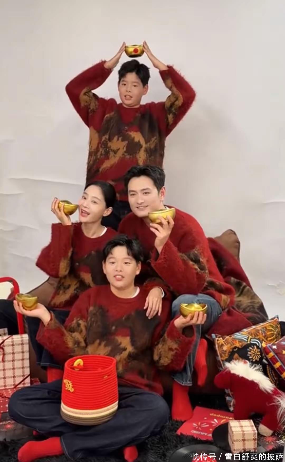 王媛可一家四口拍摄的全家福看上去就幸福满满。而且他们一家人的造型很独特,也很用心。最主要的是,这四张脸颜值都太高了!王媛可越来越漂亮了,而且气质也越来越好,哪怕只是梳着最简单的发型,穿着最简单的服装依旧遮盖不住她的光彩。妥妥的大美女一枚!他们一家人拿着大大的金元宝,充满了幸福的滋味!